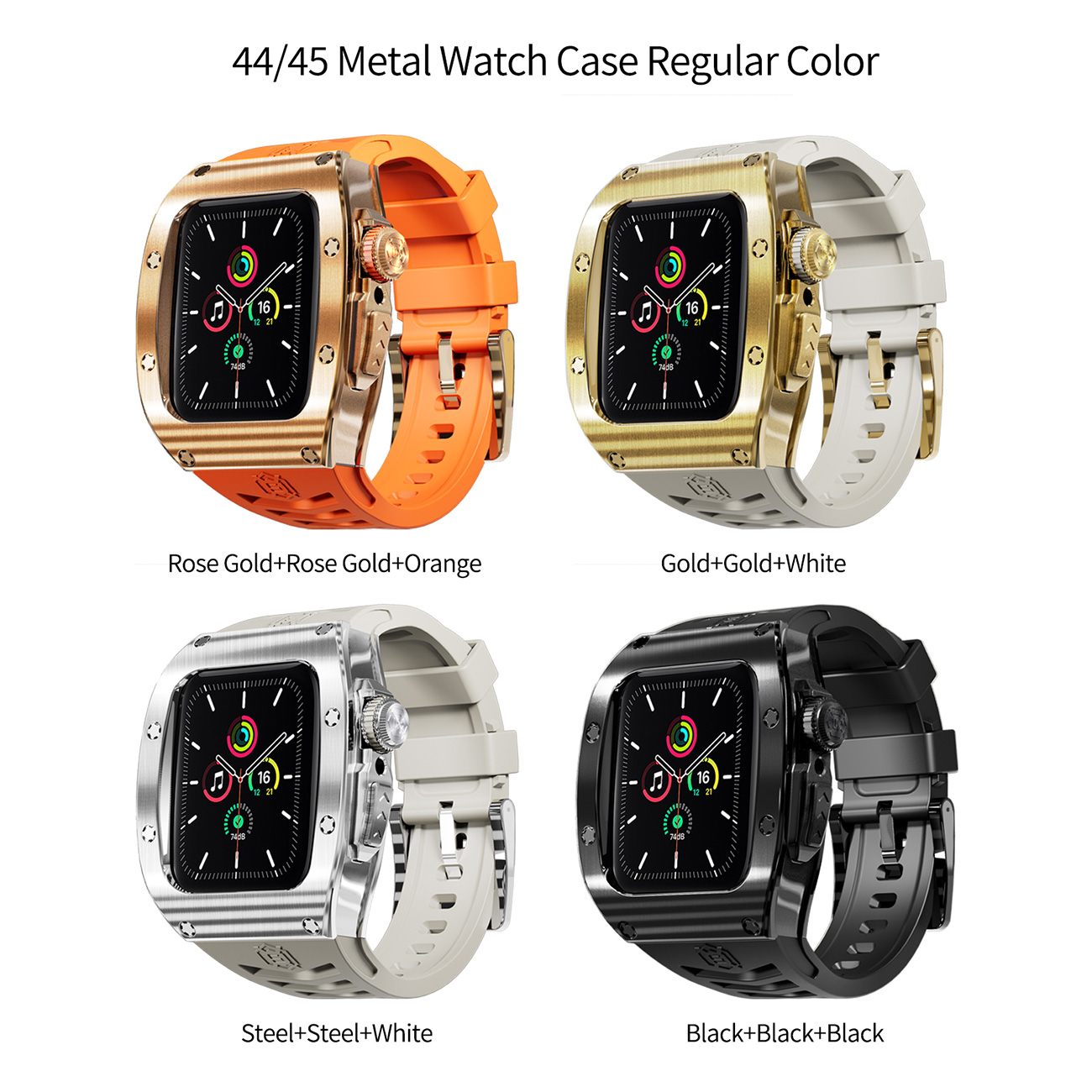 Shellbox Food-Grade Gold/Steel/Black Colored 304 44/45mm Watch Stainless Steel Case For Apple Watch With Silicon Watchband